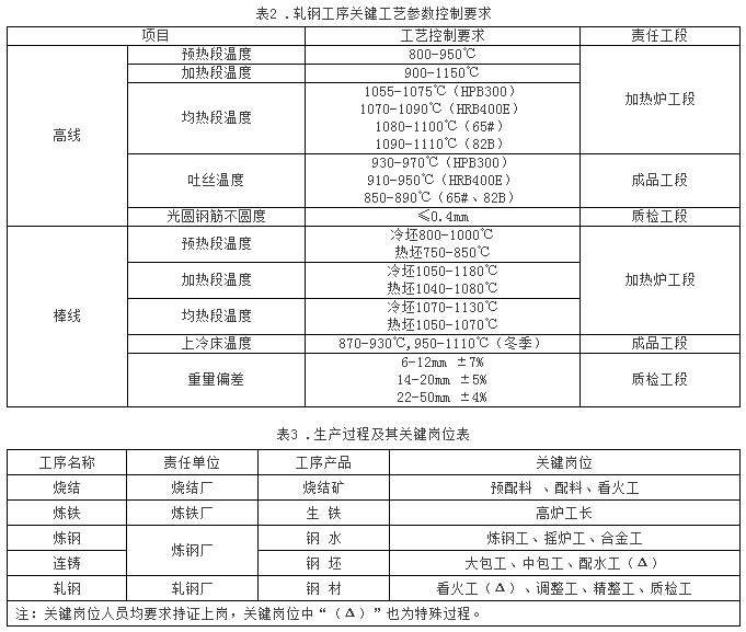 在質量管理工作中一直要求內部各單位樹立“上道工序服務下道工序”的理念。公司對產品實現過程制定了各類技術標準、崗位操作規(guī)程和工藝、質量關鍵控制點(軋鋼工序關鍵工藝參數控制要求見表2),規(guī)范了產品實現過程的控制要求。在員工按照崗位操作規(guī)程標準化作業(yè)的同時,關鍵崗位人員(表3)還對影響產品符合性的關鍵點予以重點關注,確保過程受控。