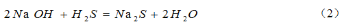 濕法脫硫工藝屬于成熟技術(shù),依靠強(qiáng)堿性溶液進(jìn)行吸收,如氫氧化鈉(NaOH)溶液。脫硫吸收裝置采用空塔噴淋,即在吸收塔內(nèi)堿液與高爐煤氣逆向接觸,反應(yīng)式如(2),可較為徹底的脫除高爐煤氣中的H2S組分。