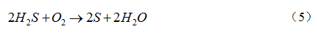 活性炭作為常見吸附材料,對(duì)H2S具有良好的脫除效果。其適用溫度為5~60℃,包括吸附、催化反應(yīng)兩方面作用[18]。由于高爐煤氣中H2S分壓占比很低,活性炭對(duì)H2S的吸附硫容較小,其表面活性基團(tuán)對(duì)H2S的催化作用占主要部分。煤氣中微量氧作用下,H2S在活性炭微孔表面被催化成硫單質(zhì),反應(yīng)式如(5)。催化反應(yīng)所需的氧含量為化學(xué)計(jì)量比的1.5~2倍,高爐煤氣中氧含量可滿足該要求。