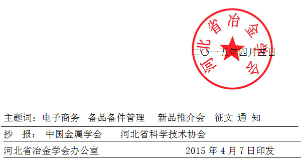電子商務(wù)作為鋼鐵工業(yè)信息化建設(shè)的組成部分,其高效、快捷、成本管理最小化等優(yōu)勢,必將在提高我國鋼鐵企業(yè)在國內(nèi)外市場上的競爭力發(fā)揮重要作用。為加快電子商務(wù)技術(shù)在鋼鐵行業(yè)中的應(yīng)用和推廣,通過電子商務(wù)平臺開展關(guān)鍵設(shè)備備件電商采購、集體儲備、“零”庫存管理工作,降低庫存,減少積壓,降本增效,提高資金利用率,將備件管理工作提升到新的水平。為了搶占區(qū)域范圍外的新市場,加速鋼鐵設(shè)備供應(yīng)與采購之間的信息互動,溝通供需渠道,密切供需合作,交流鋼鐵設(shè)備新技術(shù)、新產(chǎn)品。由河北、上海、湖北、江蘇、山東、四川、陜西省金屬(冶金)學(xué)會共同舉辦、上海寶鋼集團協(xié)辦、冶金信息裝備網(wǎng)承辦的“電子商務(wù)在冶金設(shè)備備品備件管理中的應(yīng)用學(xué)術(shù)交流會及新品推介會”,擬于2015年10月21-23在上海市召開。本次會議已列入第十屆中國鋼鐵年會暨第六屆寶鋼學(xué)術(shù)年會專題會議?,F(xiàn)將征文有關(guān)事宜通知如下: