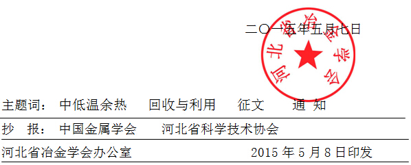 關(guān)于舉辦2015鋼鐵企業(yè)中低溫余熱回收與高效利用新設(shè)備、新技術(shù)交流會征文通知