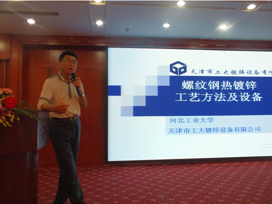 河北工業(yè)大學(xué)曹曉明教授做《螺紋鋼熱鍍鋅的工藝方法和設(shè)備》專題報(bào)告
