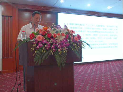 武鋼研究院高級(jí)工程師薛思毅做《我國(guó)建筑鋼筋升級(jí)換代與高強(qiáng)鋼筋工廠化加工配送》專題報(bào)告