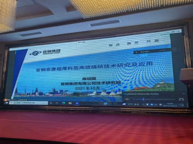 首鋼集團有限公司技術研究院高工、研究員陳紹國通過視頻會議線上直播的形式進行《京唐超厚料層高效燒結技術研究及應用》演講報告。