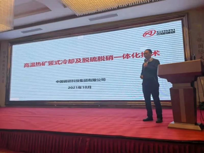 中國鋼研科技集團有限公司先進鋼鐵流程及材料國家重點實驗室正高級工程師王鋒作《高溫熱礦豎式冷卻及脫硫脫硝一體化技術》主題演講。