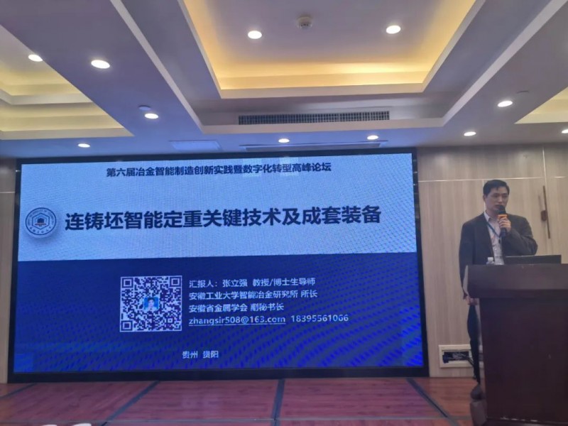 安徽工業(yè)大學(xué)、安徽省金屬學(xué)會(huì)副秘書(shū)長(zhǎng)、博士、博導(dǎo)張立強(qiáng)教授作《連鑄坯智能定重及其成套裝備技術(shù)研究》主題報(bào)告