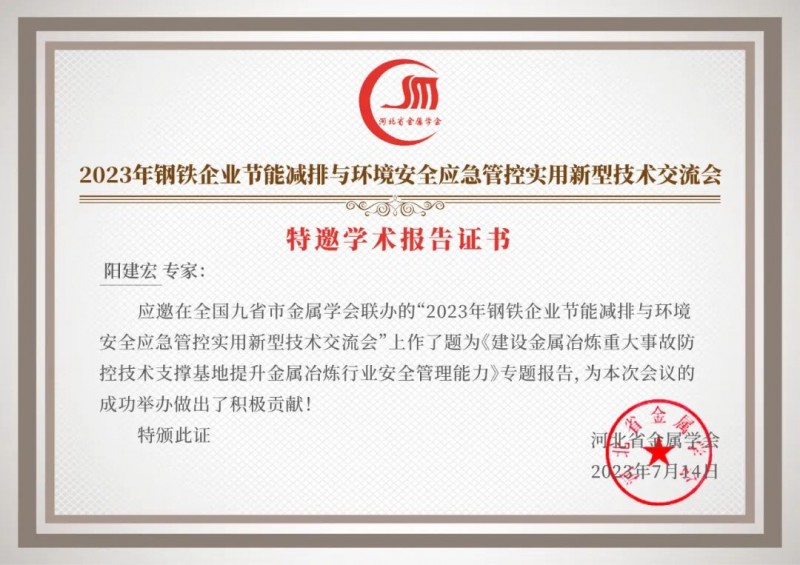 北京科技大學(xué)金屬冶煉基地副主任陽建宏作《建設(shè)金屬冶煉重大事故防控技術(shù)支撐基地提升金屬冶煉行業(yè)安全管理能力》主題報(bào)告