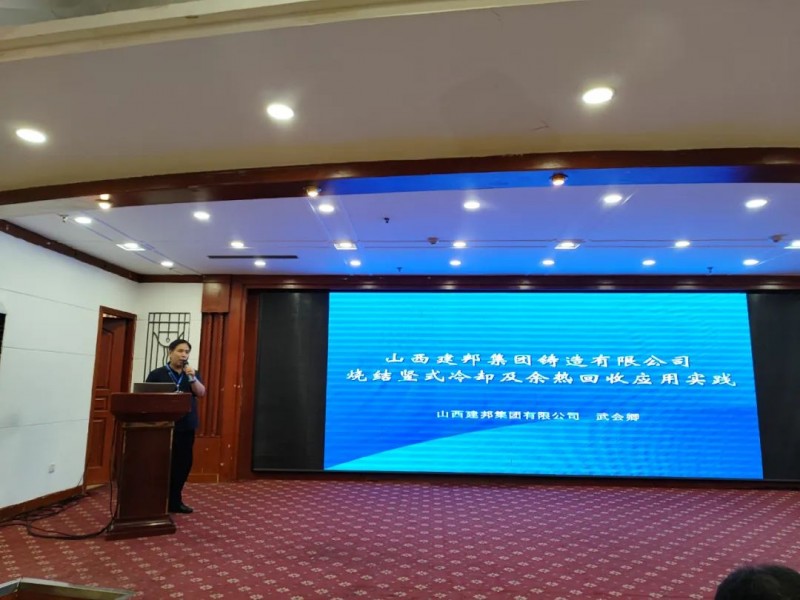 山西建邦集團(tuán)有限公司發(fā)展工程部總工武會(huì)卿作《豎式冷卻(豎冷窯)在建邦燒結(jié)機(jī)上的成功應(yīng)用及效果分析》主題報(bào)告