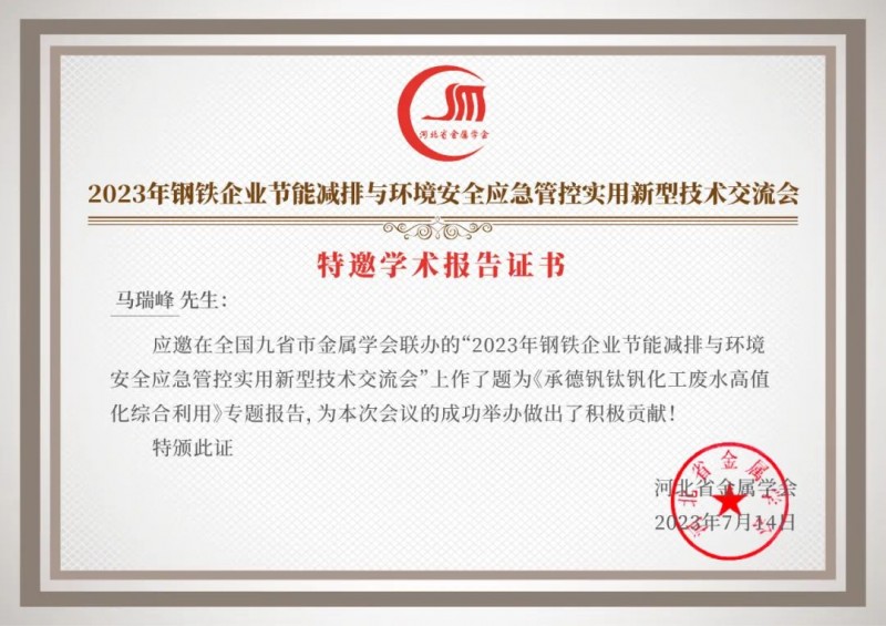 承德釩鈦新材料有限公司技術(shù)中心釩鈦研究所所長(zhǎng)馬瑞峰作《承德釩鈦釩化工廢水高值化綜合利用》主題報(bào)告