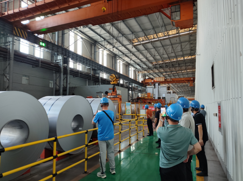 7月15日上午,參會(huì)代表們?cè)诔械骡C鈦新材料有限公司副總經(jīng)理陳樹軍陪同下參觀了承德釩鈦新材料有限公司,包括釩鈦冷軋薄板有限公司、承德釩鈦主題展館、軋鋼工藝區(qū)、無人天車區(qū)、鍍鋅生產(chǎn)線等,加深了對(duì)行業(yè)最新技術(shù)和實(shí)踐的了解。