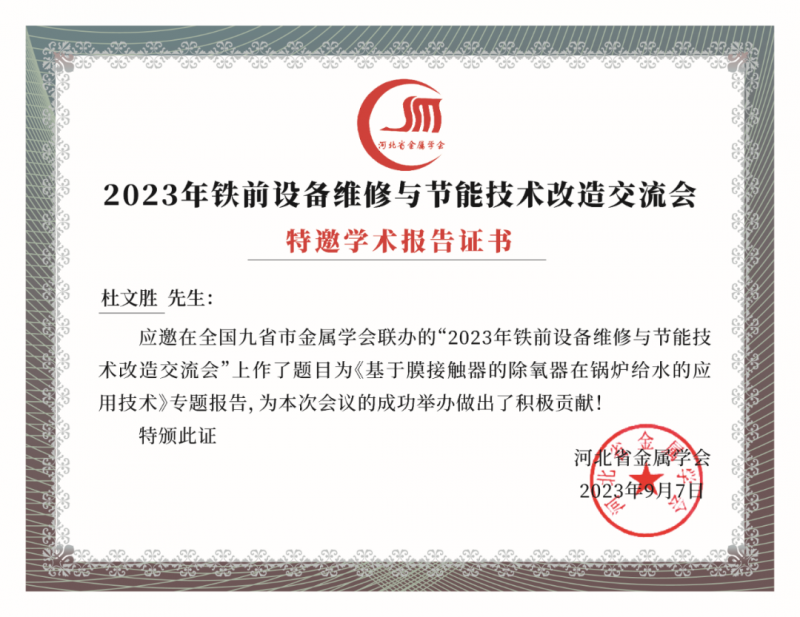 蘇州艾吉克膜科技有限公司技術(shù)副總杜文勝作《基于膜接觸器的除氧器在鍋爐給水的應(yīng)用技術(shù)》專題報(bào)告