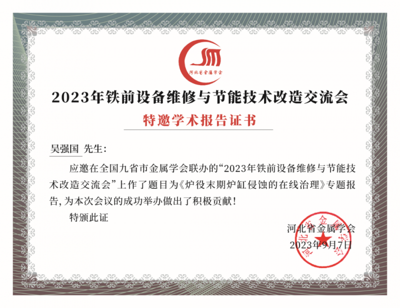 河南煜華科技有限公司總工吳強(qiáng)國(guó)作《爐役末期爐缸侵蝕的在線治理》專題報(bào)告