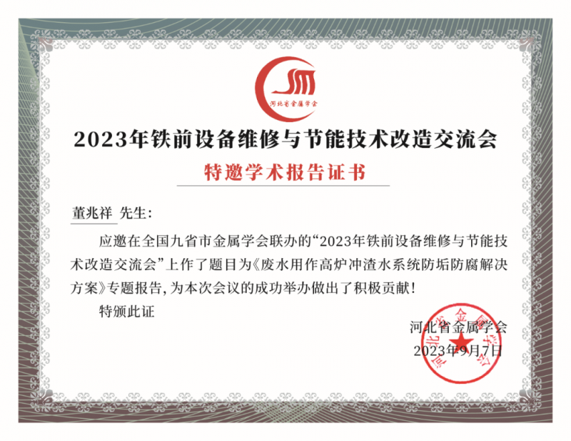 河北奧博水處理有限公司董事長(zhǎng)董兆祥作《廢水用作高爐沖渣水系統(tǒng)防垢防腐解決方案》專題報(bào)告