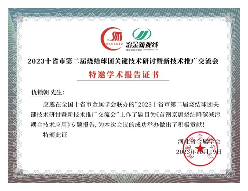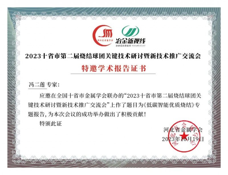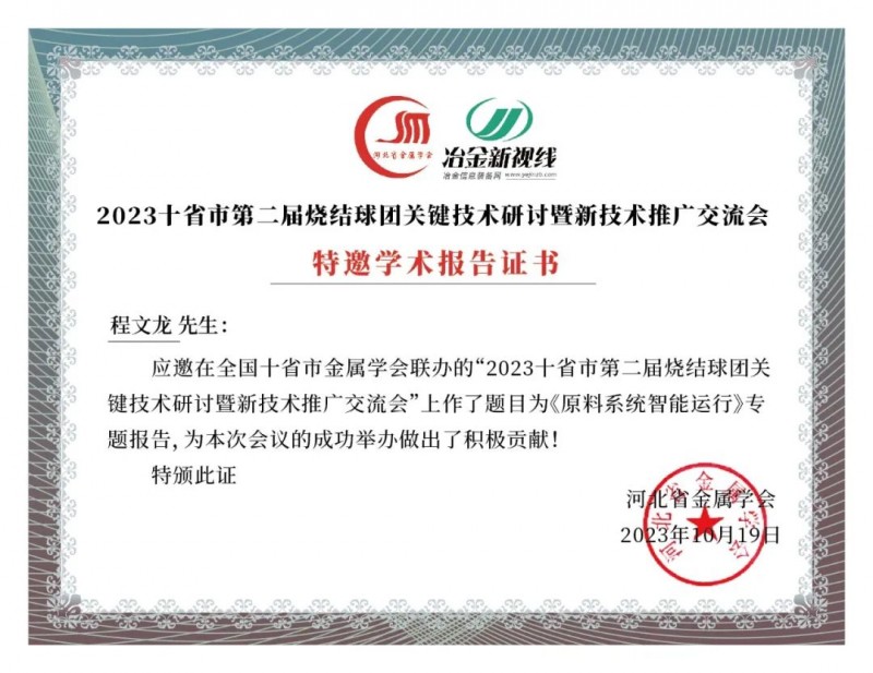 熱烈祝賀2023年十省市第二屆燒結(jié)球團(tuán)關(guān)鍵技術(shù)研討暨新技術(shù)推廣交流會圓滿結(jié)束