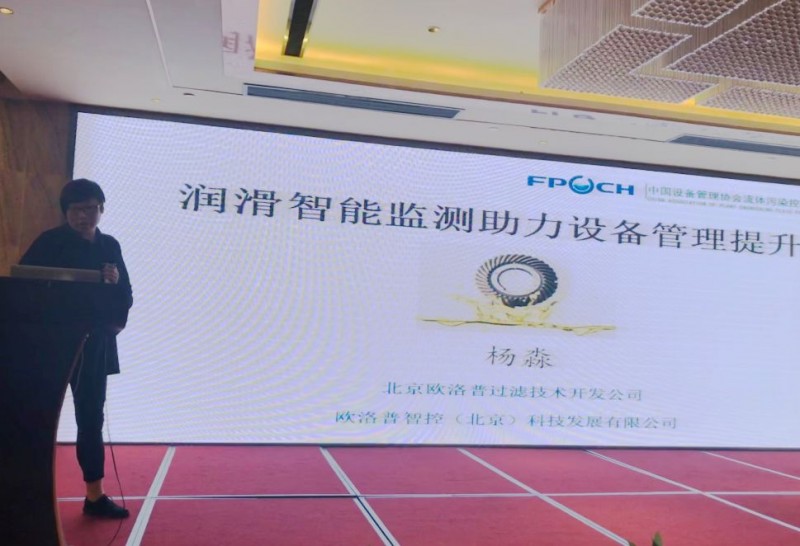北京歐洛普過濾技術開發(fā)公司總經理楊淼作《潤滑智能監(jiān)測助理設備管理提升》主題報告。指出流體污染控制是鋼鐵行業(yè)智能制造的絕佳切入點,成本低、見效快!