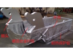 2、硬質(zhì)合金和多塊高鉻合金鑲嵌式內(nèi)襯:內(nèi)襯由多個和多塊耐磨合金襯板鑲嵌而成,合金表面耐磨性極強。 3、外殼耐熱保護板:外殼底部加裝耐高溫性能極強的保護板,使耐高溫特點更加突出。