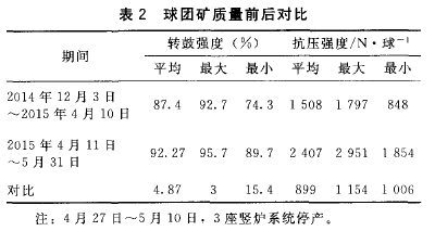 4 .1 球團礦質(zhì)量改善情況對比