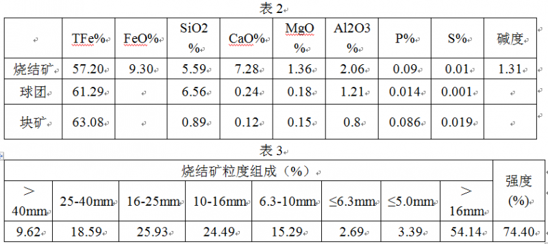 礦石使用80%高堿度燒結(jié)礦+15%球團(tuán)礦+5%生礦,成份見表2、表3