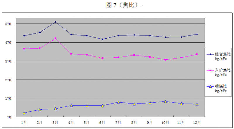 ① 堅(jiān)持焦炭枇重13.5t 不變,穩(wěn)定焦炭平臺(tái),穩(wěn)定了氣流:同時(shí)較厚的焦炭層減少了礦石對(duì)焦炭的推移作用:提高了焦碳在塊狀帶、軟融帶焦碳層的厚度,使煤氣流順利通過,降低壓差,有利于高爐操作穩(wěn)定。