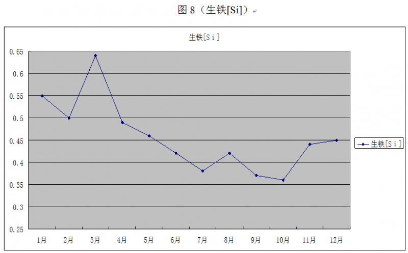 造渣制度和熱制度不合適時(shí),會(huì)影響煤氣流分布和爐缸工作狀態(tài),從而引起爐況不順。大礦批冶煉后,高爐的煤氣利用必然會(huì)發(fā)生變化。也會(huì)影響高爐的熱狀態(tài),從而會(huì)導(dǎo)致造渣制度的變化。因此5號(hào)高爐總結(jié)以往操作實(shí)踐經(jīng)驗(yàn),摸索出大礦批冶煉的熱制度和造渣制度。規(guī)定渣堿度R:1.14-1.18,[si]0.35-0.5%,物理溫度:1500~1530℃