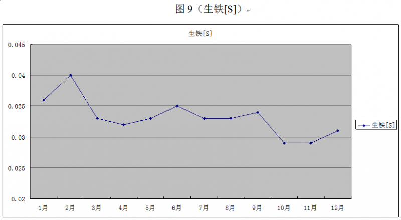 在采取以上保障措施后,龍鋼5號(hào)爐的批重由以前的43~45.5t 逐步擴(kuò)大到現(xiàn)在的56~57t,高爐穩(wěn)定順行,煤氣利用大大提高,提高了綜合冶煉強(qiáng)度,燃科比、焦比逐漸降低,高爐穩(wěn)定順行狀況明顯改善,風(fēng)壓、壓差合適,透氣性改善,料尺下料均勻,無崩料、塌料現(xiàn)象,零懸料的歷史最好水平,[Si]穩(wěn)定在0.4%左右,物理溫度> 1500C ,生鐵質(zhì)量大大改善,生鐵含[S]下降,一級(jí)品率月平均在95%以上。