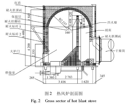 1. 1 GXDF - 5 型熱風(fēng)爐結(jié)構(gòu)