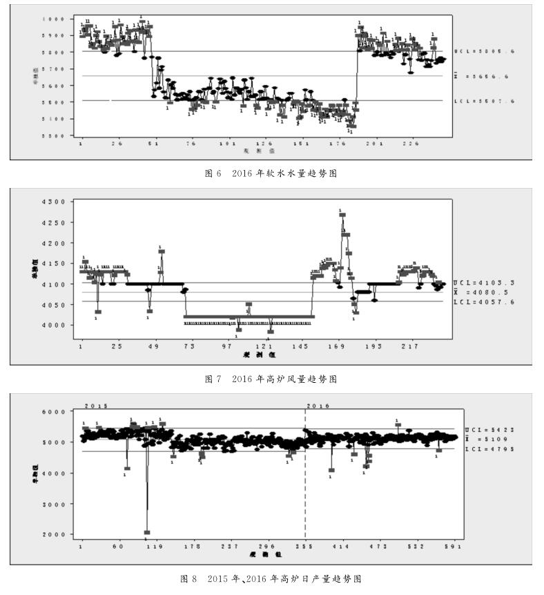 由圖8可以看出,2016年初高爐產(chǎn)量再次達到5200t/d水平,由于壁體溫度影響,高爐將產(chǎn)量目標(biāo)定到5100±50t,對穩(wěn)定壁體溫度起到一定作用。