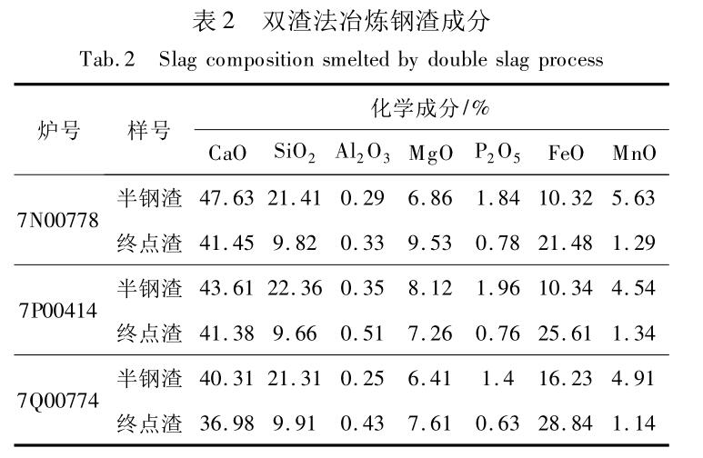 通過轉爐雙渣法脫磷控制工藝,高合金鋼連鑄坯冶煉轉爐終點鋼水磷平均含量控制在 80 ppm 以內(nèi)(見表2)。