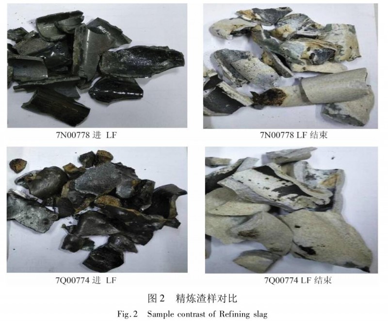 738H 鋼 LF 精煉的渣樣對比如圖 2 所示,冶煉過程中各工位的硫含量和氧含量控制如圖 3、圖 4所示。