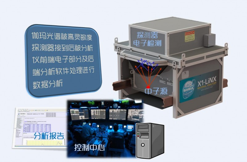 中子活化γ射線分析技術(shù),對(duì)皮帶上通過(guò)的散狀物料,進(jìn)行連續(xù)分析。锎CF252(半衰期為2.65年,人工合成元素)中子源每秒發(fā)出上億個(gè)中子,被皮帶上物料元素的原子核所吸收,這些原子核被激發(fā)而發(fā)出γ射線,探頭接收這些γ射線并轉(zhuǎn)換成數(shù)字信號(hào),最后進(jìn)行分析得出數(shù)據(jù)。每種元素激發(fā)的γ射線,都有各自獨(dú)特的頻譜,以此計(jì)算出該物料的化學(xué)成分。