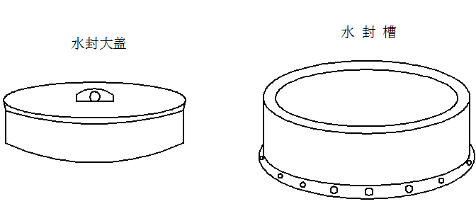 對部分荒煤氣導(dǎo)出設(shè)備進(jìn)行創(chuàng)新設(shè)計,提高系統(tǒng)密封效果。對荒煤氣泄漏嚴(yán)重的橋管、水封槽及大蓋進(jìn)行更換,并對其進(jìn)行改造,供下次循環(huán)使用。對橋管進(jìn)行加長處理,原來插入承插口閥體部位深度僅100mm,再加長補(bǔ)焊200mm。加長后的橋管插入承插口閥體較深,填料后對承插口的密封效果更佳,橋管改造前后如圖2所示。對更換下來的水封槽內(nèi)外圈及水封大蓋外圈全用不銹鋼板焊補(bǔ)替換,對橋管沙眼及孔洞進(jìn)行補(bǔ)焊和打卡處理。圖3 為水封大蓋、水封槽設(shè)計圖。