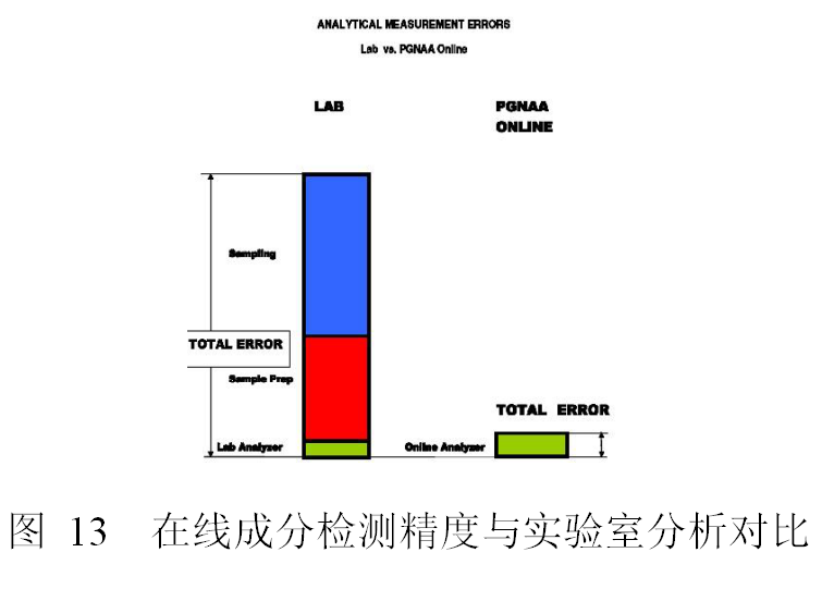 傳統(tǒng)實驗室分析方法的誤差一般是在線成分檢測的一半,但大量的誤差發(fā)生在取樣和制樣環(huán)節(jié)。在線成分檢測沒有取樣和制樣誤差,因此其總體測量精度比傳統(tǒng)實驗室分析方法精度要高得多。在線成分檢測精度與原料中含有哪些元素、各元素含量、皮帶載荷、探測器數(shù)量、中子源總量等因素息息相關(guān),具體的精度需要根據(jù)各廠情況獨立標(biāo)定。