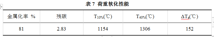 球團內(nèi)剩余部分未還原的鐵和渣,渣中FeO﹑SiO2等生成少量低熔點的渣相。由表7可見,預還原球團開始軟化溫度約1150℃左右,終了溫度約1300℃,軟還溫度區(qū)間窄。綜上所述,預還原球團的高溫還原膨脹和低溫還原粉化性特別好,其軟化開始溫度相對高,軟化區(qū)間也相對較窄,具有優(yōu)良的冶金性能。