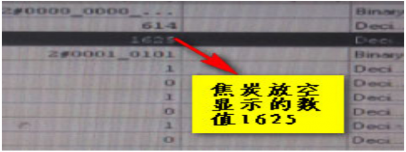 ①如下圖 11 所示左罐在 700s 時開始放礦石,860s 時料罐料空;放料期間振動值最大值達到 2.8V,電流信號經(jīng) PLC(400-4000)的量程轉(zhuǎn)換后,整體振蕩在 2500 左右的區(qū)間內(nèi), 瞬時值如圖 12,放料時間為 160 秒左右。其中零罐顯示為相鄰右罐焦炭放料時采集到的振動信號,可作為右罐放料時間校準的參考。