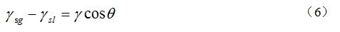 表面張力通過潤濕角影響鐵水侵蝕炭磚過程。潤濕角反應(yīng)了鐵水與炭磚的潤濕性,潤濕角越小,潤濕性越好。潤濕角與氣體和炭磚的界面張力、鐵水和炭磚的界面張力以及鐵水表面張力有關(guān)。用楊氏方程來表示這三個力與潤濕角之間的關(guān)系[25]: