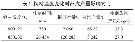 2023年 10月 10日―11月 10日,該單位棒二冷床余熱回收項(xiàng)目因工藝調(diào)整,鋼材上冷床溫度由驗(yàn)收前的(900±20) ℃調(diào)整為(850±30) ℃。鋼材溫度變化對(duì)蒸汽產(chǎn)量影響對(duì)比見表1。