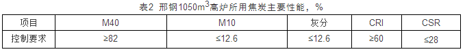 核心提示:摘 要 對邢鋼6#高爐通過不斷摸索,加強原燃料管理,采用合理的裝料制度,實施高頂壓、高風溫、高富氧等強化冶煉措施,在現(xiàn)有的原料基礎上,保證了高爐爐況穩(wěn)定順行,取得了較好的經(jīng)濟技術指標。邢鋼6#高爐有效容積為1050m3,于2011年11月28日順利投產(chǎn),經(jīng)過近3年的生產(chǎn)摸索,在保證爐況穩(wěn)定順行的基礎上,通過狠抓原燃料質量的穩(wěn)定和篩分,不斷優(yōu)化操作制度,采用大富氧、高風溫、高頂壓等強化冶煉操作技術,使高爐的各項技術經(jīng)濟指標明顯提高,平均日產(chǎn)穩(wěn)定在3400t/d以上,2014年8月1-18日平均日產(chǎn)達到了35