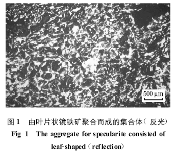 顯微結(jié)構(gòu)觀察(圖1)和X 射線衍射(圖2)分析結(jié)果表明, 本次試驗采用的鐵礦石是一種鏡鐵礦, 其主要物質(zhì)組成(質(zhì)量分數(shù), %)為鏡鐵礦65.9 , 半假象、假象赤鐵礦21.3 。燒結(jié)原料的化學成分分析結(jié)果見表2 , 原料配比見表3 。