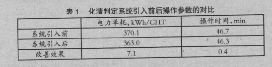 通過解析熔化過程中高次諧波隨時間變化的相關(guān)數(shù)據(jù)和熔化末期電源頻率偶數(shù)倍區(qū)域的發(fā)聲規(guī)律,確定可作為判定標(biāo)準(zhǔn)的特定閾值,結(jié)合智能算法開發(fā)了化清判定系統(tǒng)。實(shí)際生產(chǎn)中,化清判定系統(tǒng)利用電流互感器測量的電流值變化進(jìn)行演算處理獲取高次諧波成分,利用噪聲計(jì)測量的爐內(nèi)噪聲變化進(jìn)行頻率解析,然后利用系統(tǒng)的智能模塊對電爐內(nèi)廢鋼熔化狀態(tài)進(jìn)行判定。大同特鋼收集大量E-adjust 實(shí)際生產(chǎn)數(shù)據(jù),并與傳統(tǒng)人工判斷化清的生產(chǎn)模式作對比,表1為引入化清系統(tǒng)前后1 個月的操作參數(shù)對比情況。結(jié)果表明,電爐平均電耗降低了7.1kWh/爐,操作時間減少了0.4min,引入E-adjust 系統(tǒng)后因操作穩(wěn)定而消除了用電的無效化,節(jié)省了電能并提高了電爐生產(chǎn)效率。