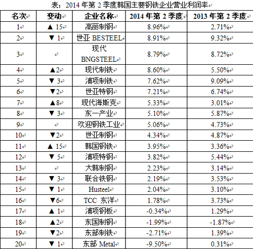 據(jù)韓國網(wǎng)站EBN本月2日的消息稱,韓國金融監(jiān)督院公布了韓國國內(nèi)20家鋼鐵企業(yè)今年第2季度經(jīng)營業(yè)績,高麗制鋼以8.96%的營業(yè)利潤率位列榜首。