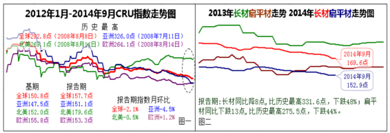 核心提示:9月份的全球鋼市在亞洲,主要是中國大陸鋼價深度下跌的拖累下,繼續(xù)呈現(xiàn)東弱西強的格局。月末,157.7點的CRU總指數(shù)月環(huán)比下跌2.0