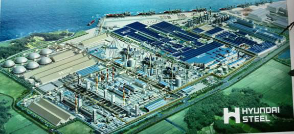 可以說,現(xiàn)代汽車集團現(xiàn)已變?yōu)槭澜缡准揖邆滂F水至汽車資源循環(huán)型企業(yè),可望以此產(chǎn)生集團綜合效益。同時該公司由設計階段起一向追究綠色鋼廠理念,成為世界鋼鐵業(yè)首度引進全封閉型原料處理設備及徹底隔絕噪音與灰塵系統(tǒng),投入總投資費用8.5%(5300億韓元1:1120折4.73億美元)用于環(huán)境設備。從Google截圖下的唐津廠區(qū)俯瞰圖,見下圖: