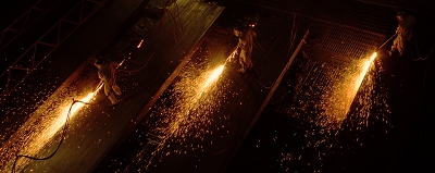 雖然看不清畫面中人物的容顏,但是可以聯(lián)想到在高溫的炙烤下,一定滿頭汗水;雖然猜不到他們此時(shí)此刻的心情,但是可以肯定的是在嚴(yán)峻的作業(yè)條件下,一定時(shí)刻緊繃著安全生產(chǎn)這根至關(guān)重要的弦。他們不僅是手清場(chǎng)上揮灑著青春與汗水的一線員工,也是協(xié)力分公司數(shù)千員工工作生活的真實(shí)寫照,更是在現(xiàn)場(chǎng)默默耕耘的最可愛的人。在煉鋼最后一道生產(chǎn)關(guān)卡,“火槍手”留下了汗水,熔化了缺陷。在產(chǎn)品質(zhì)量要求日益嚴(yán)格的當(dāng)下,他們不斷地提升著連鑄坯質(zhì)量,為寶鋼精品鋼的建設(shè)貢獻(xiàn)著自己的力量。