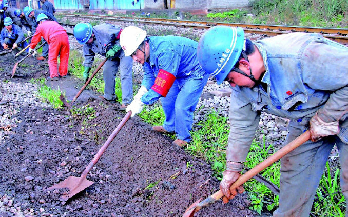 12月2日,水鋼公司煉鐵廠原料車間組織辦公室、膠結(jié)組、維修組職工,對(duì)翻車機(jī)3號(hào)空車線鐵路兩側(cè)沿途散落礦石進(jìn)行收集歸倉(cāng),撿回不菲效益,同時(shí)為鐵路安全暢通提供保障。