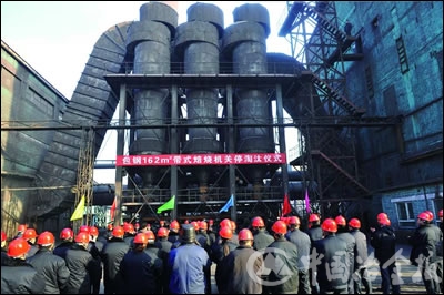 圖為包鋼162平方米帶式球團焙燒機關(guān)停淘汰儀式現(xiàn)場。