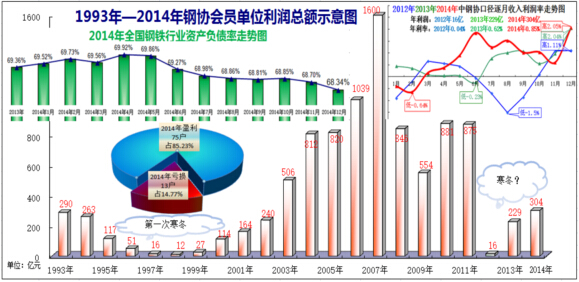 四是資產(chǎn)負(fù)債率降低。到2014年末,鋼協(xié)會(huì)員單位資產(chǎn)負(fù)債率68.34%,降至近兩年來(lái)的最好水平,較歷史最高的69.92%下降1.58個(gè)百分點(diǎn)。這顯示,全國(guó)鋼鐵業(yè)在“新常態(tài)”里,通過(guò)轉(zhuǎn)方式、調(diào)結(jié)構(gòu)、壓縮投資規(guī)模等有力措施(2014年,全國(guó)鋼鐵工業(yè)完成固定資產(chǎn)投資5250.12億元,同比下降5.42%,),取得了明顯成效。有力回?fù)袅耍?ldquo;鋼鐵業(yè)必將崩盤”等奇談怪論。