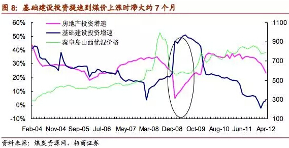 基礎(chǔ)建設(shè)投資提速到煤價(jià)上漲時(shí)滯大約7個(gè)月。