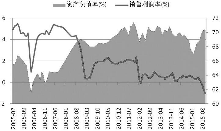 圖為煉鋼企業(yè)產(chǎn)品銷售利潤率和資產(chǎn)負債率