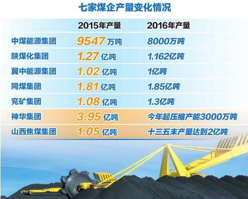 這7家煤炭企業(yè)分別是:神華集團、中煤能源集團、同煤集團、陜煤化集團、兗礦集團、山西焦煤集團、冀中能源集團。數據顯示,今年神華集團、中煤能源集團、陜煤化集團、冀中能源集團產量均為下降,同煤集團、兗礦集團仍然上調了產量目標,山西焦煤集團“十三五”期間也要實現煤炭產量增加。