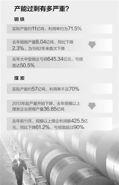 2016年新年伊始,針對鋼鐵、煤炭兩大行業(yè),國務(wù)院先后出臺了化解過剩的具體方案,目前各項配套政策正在抓緊制定之中。根據(jù)這兩份方案,5年之內(nèi),全國粗鋼產(chǎn)能要壓減1億—1.5億噸;3至5年內(nèi),再退出煤炭產(chǎn)能5億噸左右、減量重組5億噸左右。